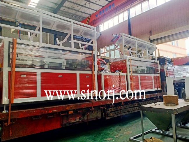 四條PVC格柵板生產(chǎn)線板車(chē)發(fā)貨中