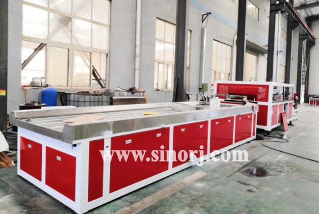 工廠內(nèi)正在安裝PVC門板生產(chǎn)線